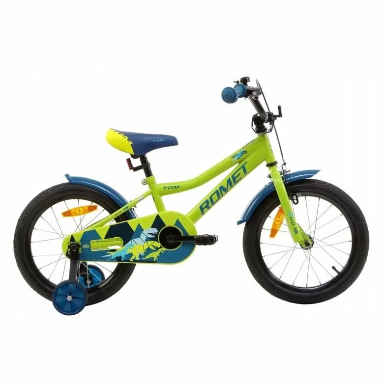 16 Tommer Romet Tom Drengecykel Blå / Gul-grøn
