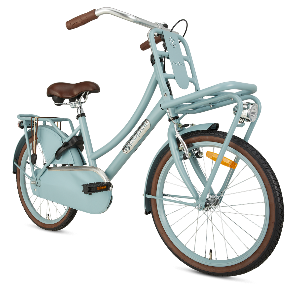 Den traditionelt hollandske basale transportcykel er udstyret med et dobbelt bagageholder. Ingen taske er for meget! Både foran og bag kan let transporteres bagage til skole- eller sportsaktiviteter. Denne flotte pige cykel fra Popal har en hjulstørrelse på 20 tommer. Og er velegnet til alderen mellem seks og otte år. superfunktionel forår på den daglige hollandske basale børnecykel og din cykel superhurtigt fra skole til hjem eller vice versa. Er det lidt for hurtigt? Intet problem, stålrammen kan tage en juling! Fodbremse ibag og V-bremse foran. Jakkebeskytteren forhindrer farlige situationer og revner i tøj. brugerdefineret komfort Alle disse timer på cyklen, så er komfort bestemt et krav. Håndtagene er i hånden, gummien giver også det rigtige greb. Den blødt formede sadel og justerbar i højden. Og så perfekt at tilpasse sig de rigtige længder, så en behagelig tur er garanteret! “Er du ikke på cyklen? Parker cykelens ubekymret og sikkert med den praktiske ringlås. stilfuld og sikker Den traditionelle ramme og udstyret med lukket kædebeskyttelse. De brune farvede håndtag og sadel giver en dejlig farvekontrast. Giv en ring på cykelklokken, og du kører forbi med stil! Ud over at se godt ud på cyklen, ønsker du naturligvis også at blive set i mørke eller i skumringen. Børnecyklen er udstyret med LED -belysning, så du er tydeligt synlig både foran og bag. helt udstyret! Leder du efter en cykel til daglig brug, som har alt hvad du har brug for? Med denne traditionelle transportcykel er cykler ekstra sjove og transporterende bagage meget enkel! Generelle specifikationer: køn: piger Materiale Ramme: stål Fælge: Aluminiumsmateriale Alder Indikation: 6 til 8 år Vægt: Ca. 18 kg Specifikationer Størrelser: hjul Størrelse: 20 tommer Ramme Størrelse: 32 cm Egnet egnet Til kropshøjde: 118-128 cm sadelhøjde Justerbar: Ja Specifikationer Bremser: Type bagbremse: fodbremse og foran V-bremse Belysning: LED-belysning