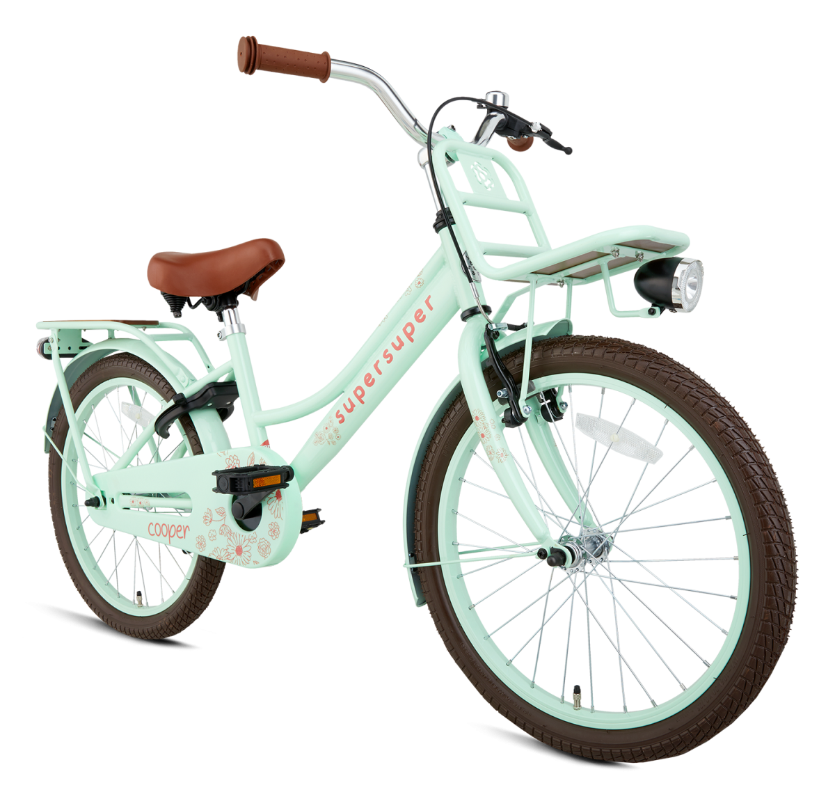 Cooper Bamboo er en klassisk hollandsk børnecykel med moderne twist – frisk og trendy pistaciegrøn farve kombineret med mørkebrune cykeldæk, bred og komfortabel saddel i brun med matchende håndtag, samt bambus plader på bagagebæreren og frontladet, som tilføjer cyklen en miljørigtig karakter og fremhæver stilen. Cooper Bamboo – den perfekte cykel til at køre i skole, til fritids aktiviteter eller på en søndagstur i skoven sammen med familien.